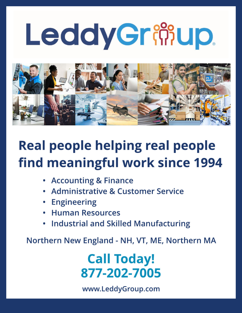 ad for the Leddy Group staffing agency with a gallery of photos showing people at work